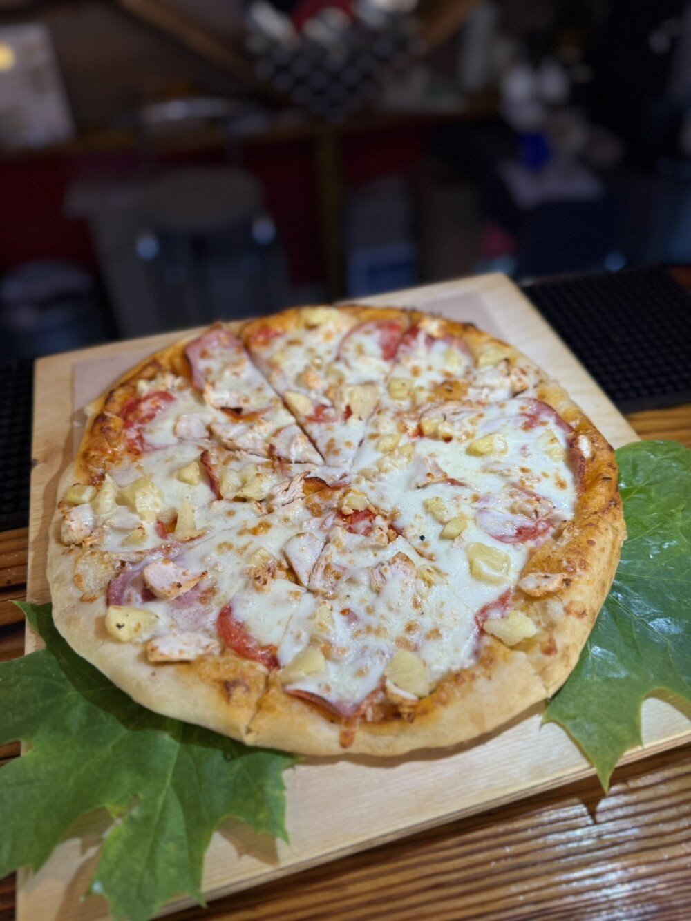 Ветчина, курица, ананасы, помидоры, сыр, соус пицца